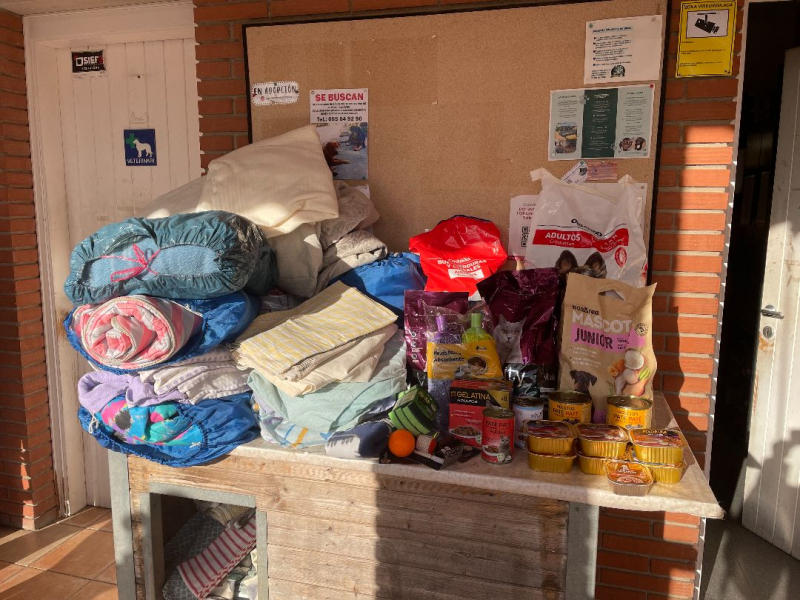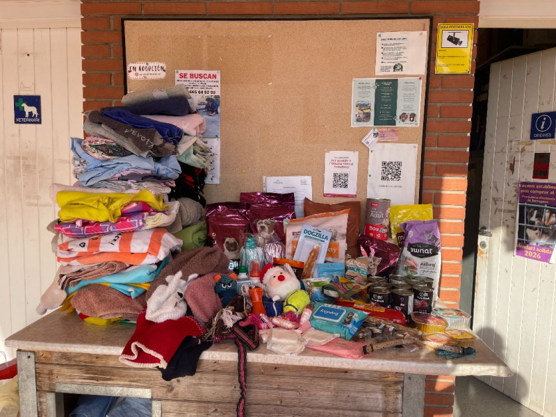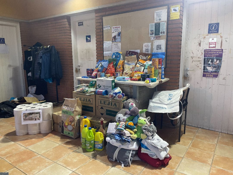Més de 80 productes sanitaris i d’higiene (alcohol, aigua oxigenada, tovalloletes especials per animals, desinfectant, suero, benes, gases…).